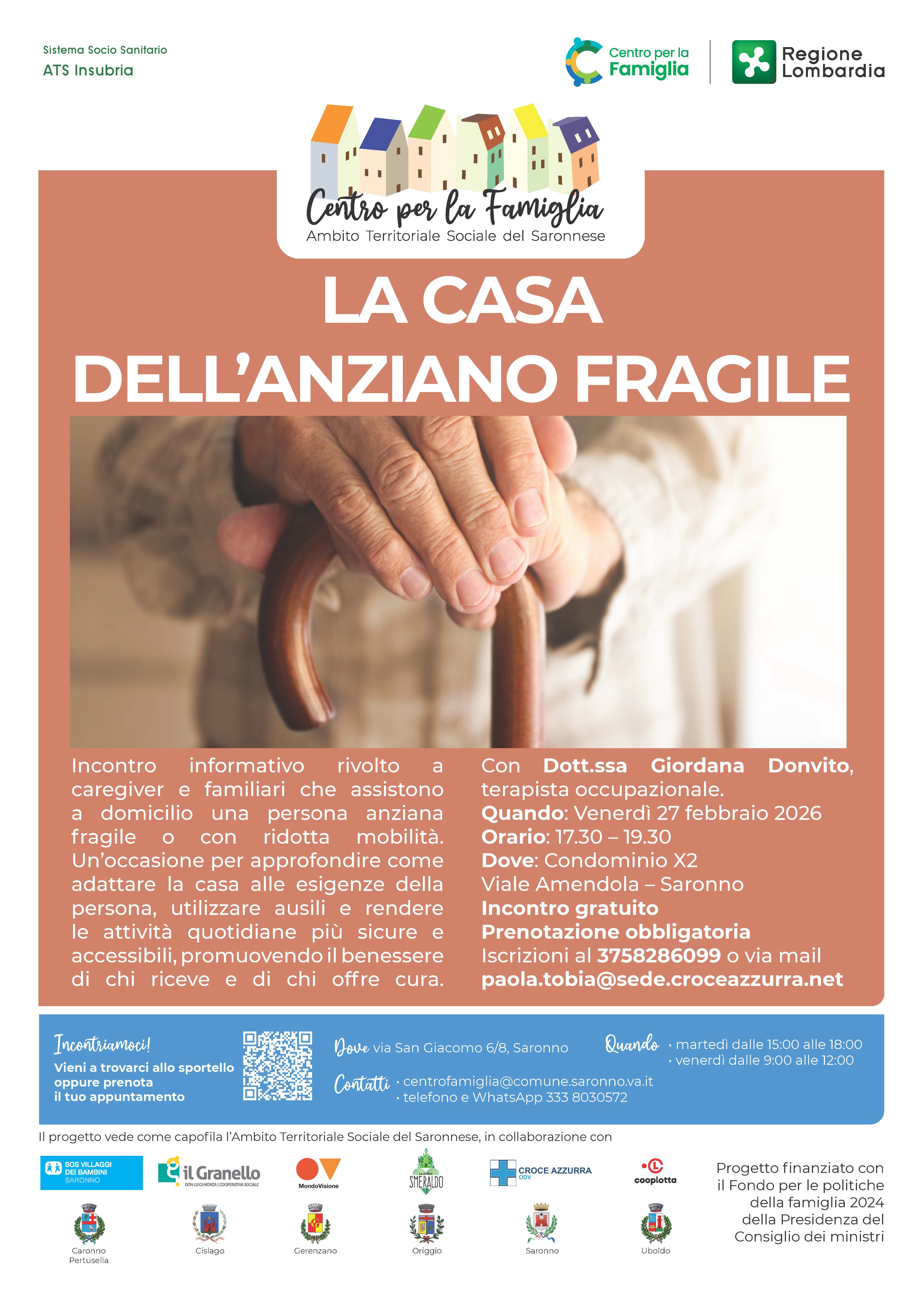 Incontro informativo per caregiver e familiari che assistono a domicilio persone anziane fragili o con ridotta mobilità, con focus su adattamento degli spazi domestici, ausili e sicurezza quotidiana.